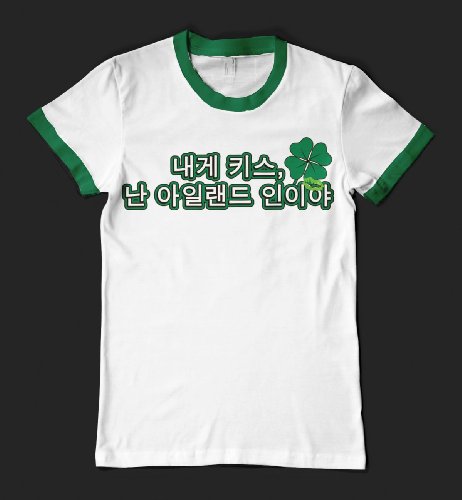 Irish T-Shirt in Korean, Green & White Ringer Feature